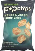 All the flavor, where's the fat? After one delicious, crispy chip, you'll get why we call it "original". Think Popped!Lately all this low-fat health talk has been taking the fun right out of snacking, not to mention the flavor. So we found a new way to put it back into an all natural chip like you've never tasted before. Never Fried. Never Baked.We don't fry it (unhealthy). We don't bake it (undelicious). We take wholesome potatoes, apply heat and pressure, and pop! It's a chip. Then we season it with the finest ingredients for a snack so tasty, crispy and dip-able, you won't even notice that it's (we hesitate to say) healthier. Nothing fake or phony.No fake colors, no fake flavors, no flourescent orange fingertips, no wiping your greasy chip hand on your jeans. No, really. All NaturalNo preservativesNo artifical flavors or colorsNo cholesterolNo saturated fat0 g trans fat.Popchips Potato Chips Sea Salt and Vinegar -- 3 oz Feature
