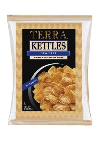 People often say there's nothing new under the sun, and yet Terra Chips are both old-fashioned and uniquely new. Old-fashioned in the sense that people have cherished these root vegetables since before civilization began. New in those two chefs from New York City, Dana Sinkler and Alexander Dzieduszycki, have gathered this delicious variety of vegetables together and prepared them into a light, naturally colorful collection of chips. Many of these vegetables are savory, some are sweet and mixed together they achieve a satisfying balance of flavors - complex, nutty, rich, delicate.Terra Kettles Krinkle Cut Potato Chips, Sea Salt, 2-Ounce Bags (Pack of 24) Feature